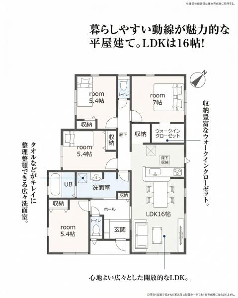 〇敷地面積約71坪!カースペース並列3台可能な4LDK平屋建て住宅 建物はワンフロアで生活動線が完結する人気の平屋建て。4LDKの間取りで、ご家族それぞれのプライベート空間もしっかり確保できます。